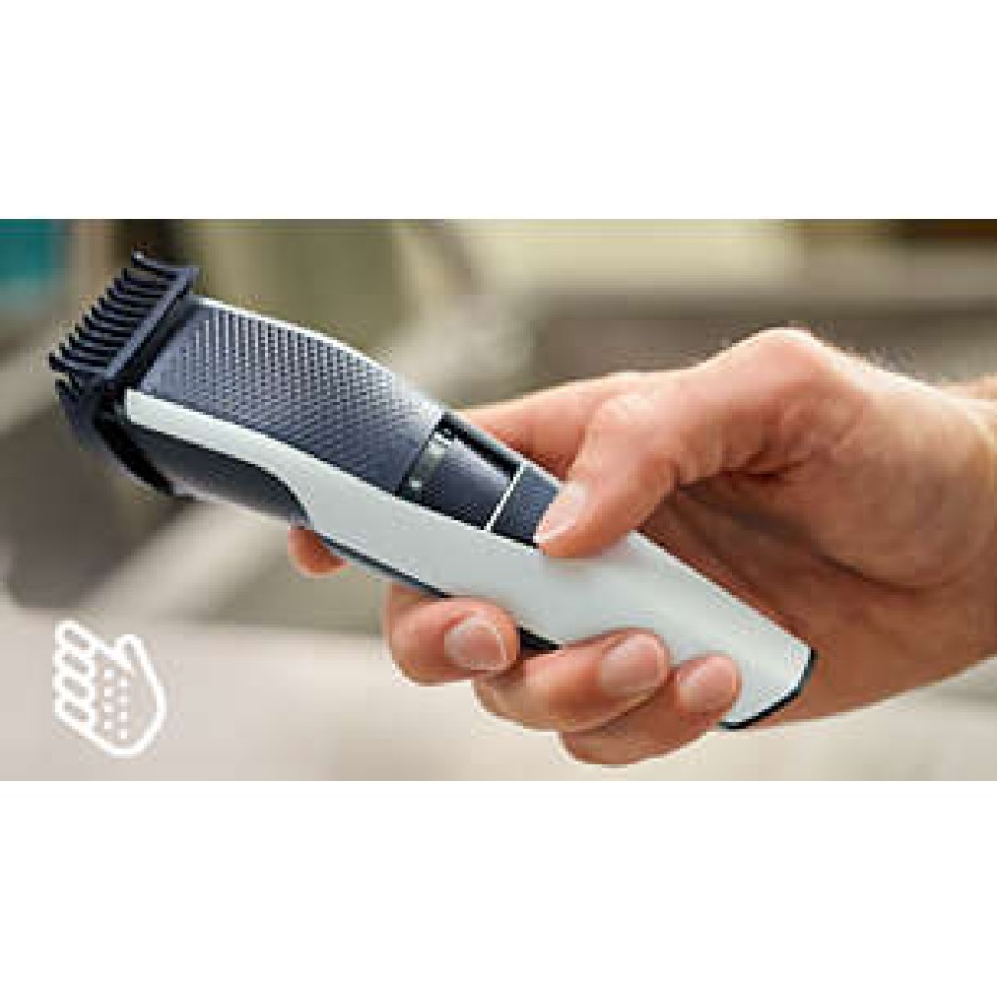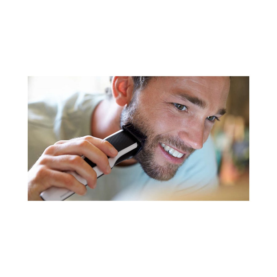 Αυτό το τρίμερ της Philips με το επαναστατικό σύστημα Lift & Trim ανασηκώνει και αιχμαλωτίζει περισσότερες μικρές τρίχες για αποτελεσματικό και ομοιόμορφο αποτέλεσμα στο τριμάρισμα. Με αυτόν τον τρόπο, μπορείτε να έχετε γένια 3 ημερών, κοντό ή μακρύ μούσι, όπως ακριβώς επιθυμείτε.