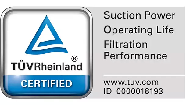 Η κλασική σακούλα s-bag® με μεγάλη διάρκεια ζωής της Philips έχει ελεγχθεί και πιστοποιηθεί από τον ανεξάρτητο φορέα TÜV Rheinland Group.