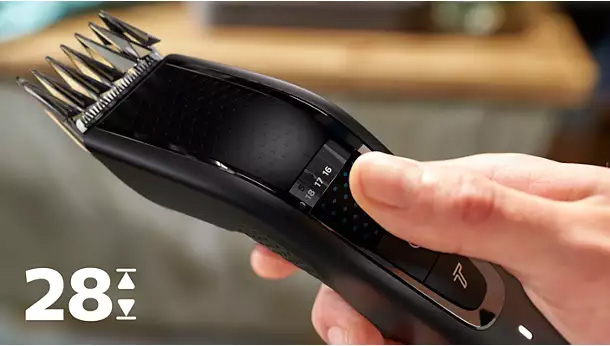 Κόψτε τις τρίχες σας ακριβώς στο μήκος που θέλετε, με 2 προσαρμοζόμενες χτένες που κόβουν από 3 χιλ. έως 28 χιλ. σε διαβαθμίσεις του 1 χιλ. και μια χτένα για κοντά γένια 2 χιλ. Μπορείτε επίσης να αφαιρέσετε τη χτένα για τριμάρισμα στα 0,5 χιλ.