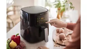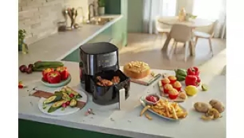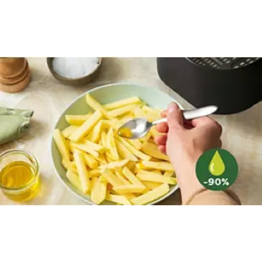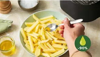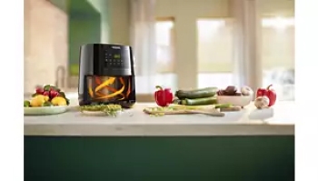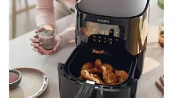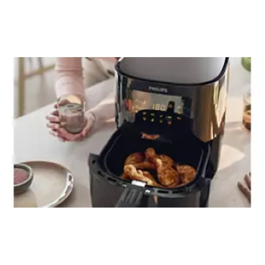 Το Philips Airfryer Essential χρησιμοποιεί θερμό αέρα για να μαγειρεύει τέλεια και τραγανά τα αγαπημένα σου φαγητά με έως και 90% λιγότερα λιπαρά.