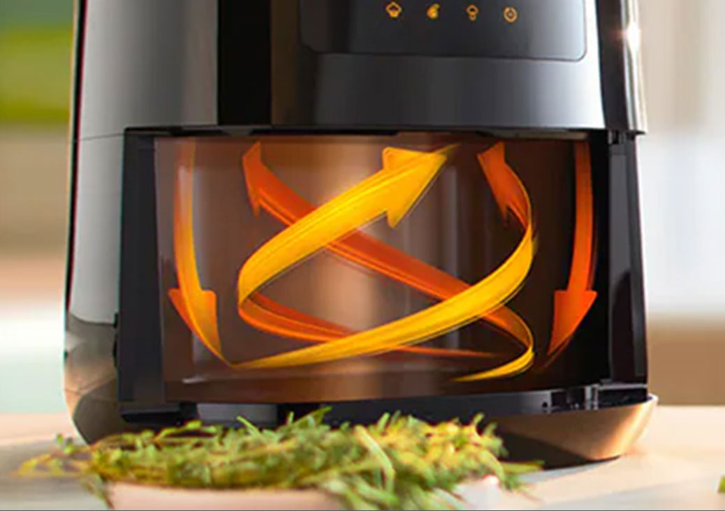 Τοποθέτησε τα υλικά στον κάδο πριν φύγεις από το σπίτι και σύνδεσε το airfryer με την εφαρμογή NutriU. Έτσι, μπορείς να επιλέξεις από απόσταση ένα πρόγραμμα, ή μία συνταγή και να παρακολουθείς το μαγείρεμα από οπουδήποτε και αν είσαι. Ενεργοποίησέ το και απόλαυσε ένα ζεστό, φρεσκομαγειρεμένο γεύμα όταν επιστρέψεις σπίτι!Με τεχνολογία Rapid Air