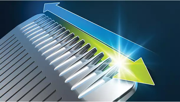Το τρίμερ διαβάζει την πυκνότητα των γενιών 125 φορές ανά δευτερόλεπτο και αυξάνει την ισχύ ακριβώς όταν το χρειάζεστε για να αντιμετωπίσετε και τα πυκνά, φουντωτά ή μακρύτερα γένια.