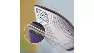 Η ειδική κεραμική πλάκα γλιστράει ομαλά σε κάθε ύφασμα. Είναι αντικολλητική, ανθεκτική στις γρατσουνιές και καθαρίζεται εύκολα.