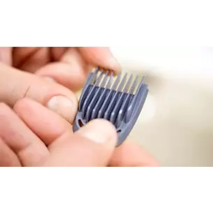2 χτενάκια για γένια (1,2 χιλ.), 1 ρυθμιζόμενη χτένα για γένια (3-7 χιλ.), 3 χτένες μαλλιών (9,12,16 χιλ.) και 2 χτένες για το σώμα (3,5 χιλ.).Χρόνος λειτουργίας: έως 120 λεπτά ασύρματης χρήσης ανά φόρτιση