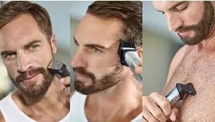 Αυτό το τρίμερ "όλα σε ένα" τριμάρει και διαμορφώνει το στυλ των τριχών του προσώπου και των μαλλιών σας και περιποιείται το σώμα σας με άνεση.