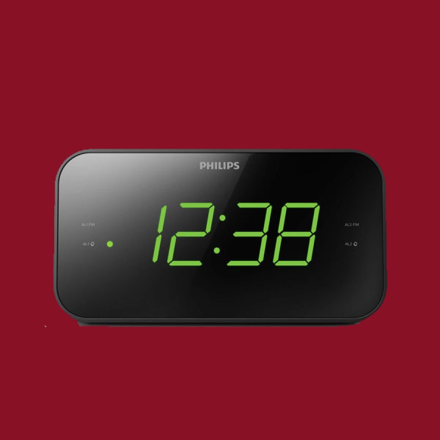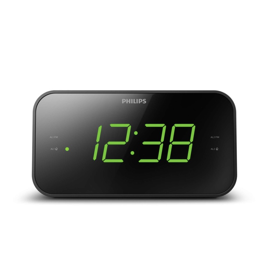 Philips TAR3306/12 Clock & Portable Radio Μαύρο με μεγάλη ευκρινής οθόνη, ψηφιακό ραδιόφωνο FM και διπλό ξυπνητήρι.