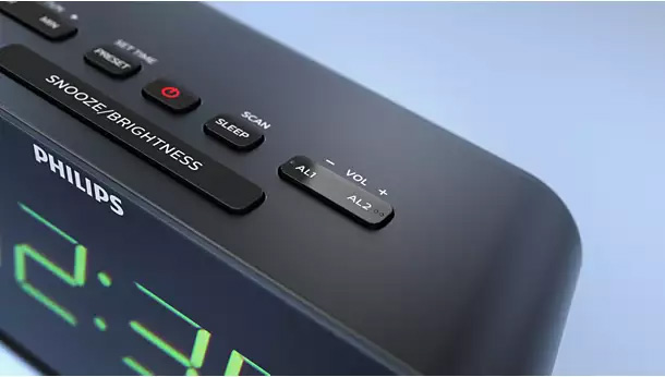 Με τη λειτουργία διπλού ξυπνητηριού, μπορείτε να ρυθμίσετε δύο διαφορετικές αφυπνίσεις και να τις συνδέσετε με το ραδιόφωνο ή με έναν ήχο ξυπνητηριού. Τέλεια λύση αν έχετε την τάση να σας παίρνει ο ύπνος μετά την πρώτη αφύπνιση, ή αν ο/η σύντροφός σας πρέπει να ξυπνήσει πριν από εσάς.