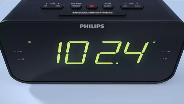 Δείτε την ώρα με μια ματιά με αυτό το ραδιορολόι FM που διαθέτει και ξυπνητήρι. Τα μεγάλα ψηφία διευκολύνουν την προβολή της οθόνης από οποιαδήποτε γωνία, ενώ μπορείτε να προσαρμόσετε τη φωτεινότητα ανάλογα με το χώρο σας. Τα απλά στοιχεία ελέγχου φροντίζουν για τη ρύθμιση του συναγερμού, της έντασης και του συντονισμού.Λειτουργία διπλού ξυπνητηριού. Ρυθμίστε δύο αφυπνίσεις