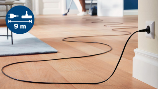 Η εμβέλεια 9 μέτρων από το βύσμα έως το ακροφύσιο επιτρέπει τη χρήση της συσκευής για μεγαλύτερο χρονικό διάστημα χωρίς αποσύνδεση.Φίλτρο Allergy H13