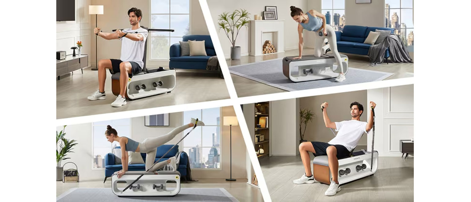 Με 15 αξεσουάρ και 3 λειτουργίες άσκησης, προσφέρει ποικιλία προπονήσεων για όλο το σώμα. Ιδανικό για προπονήσεις με παρέα, ενώ η προσθήκη βάρους αυξάνει την ένταση. Ο κομψός σχεδιασμός συνδυάζει αισθητική και λειτουργικότητα, με αποθηκευτικό χώρο για όλα τα αξεσουάρ.