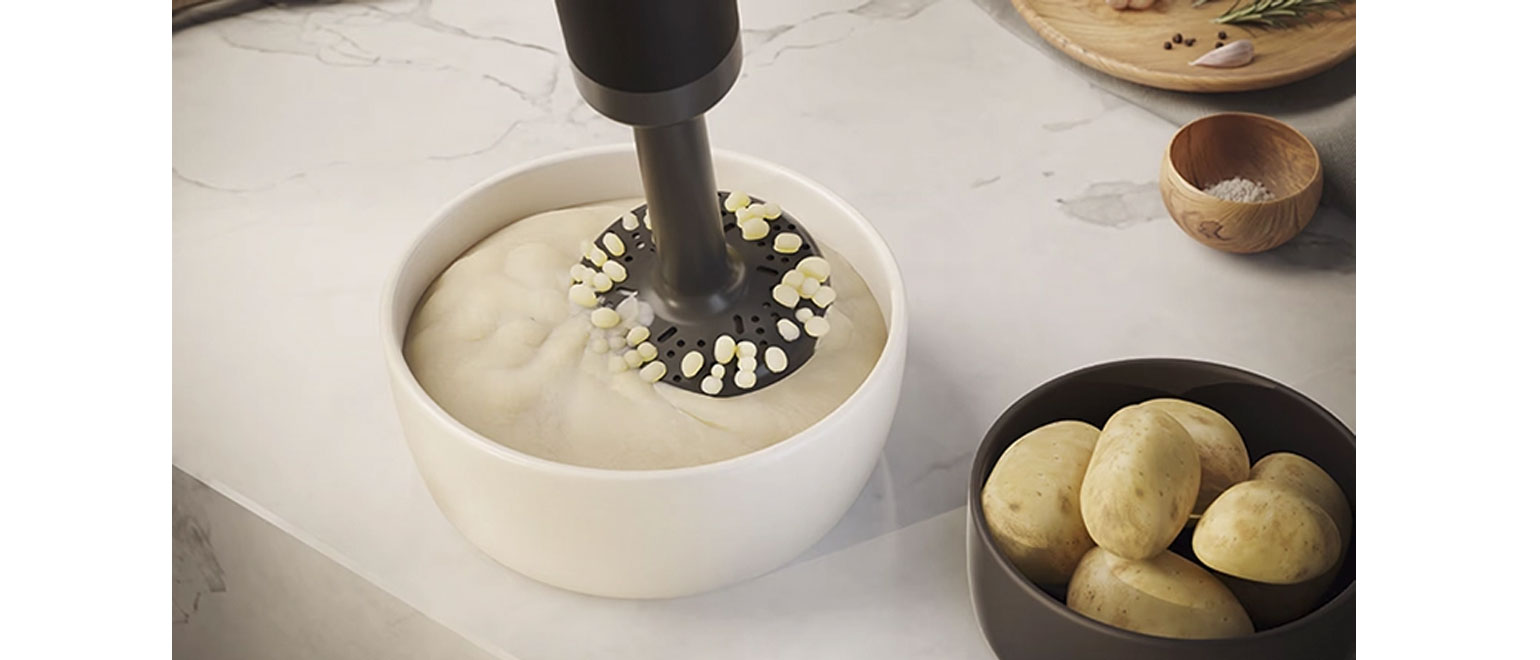 Φαντάζεσαι έναν πουρέ χωρίς σβόλους και τελείως απαλό; Μπορείς να το επιτύχεις χάρη στον Πολτοποιητή, το αξεσουάρ που παρέχεται με το Haier i-Master Series 5 – Multi Blender Χειρός που έχει σχεδιαστεί για να πολτοποιήσει πατάτες και άλλα βραστά λαχανικά.