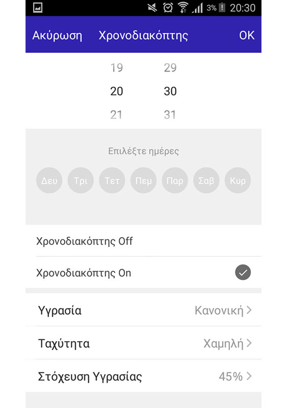 Όρισε όσα πλάνα ενεργοποίησης ή απενεργοποίησης ταυτόχρονα επιθυμείς και επιπλέον μπορείς να τα ενεργοποιήσεις ή και να τα απενεργοποιήσεις κάθε ένα από αυτά.