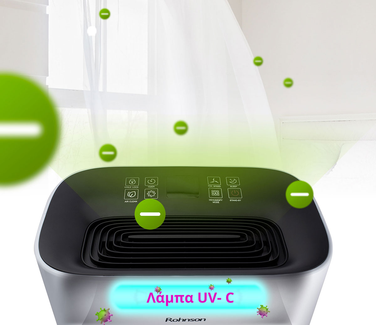 Η Ultraviolet λάμπα UV-C περιέχει την ενδεδειγμένη ποσότητα ενέργειας για να ”σπάσει” την μοριακή δομή των μικροοργανισμών. Καταφέρνει να εξουδετερώσει το ιικό και βακτηριακό μολυσματικό φορτίο του αέρα, προσφέροντας έτσι απόλυτα υγιεινή ατμόσφαιρα στον χώρο σου.