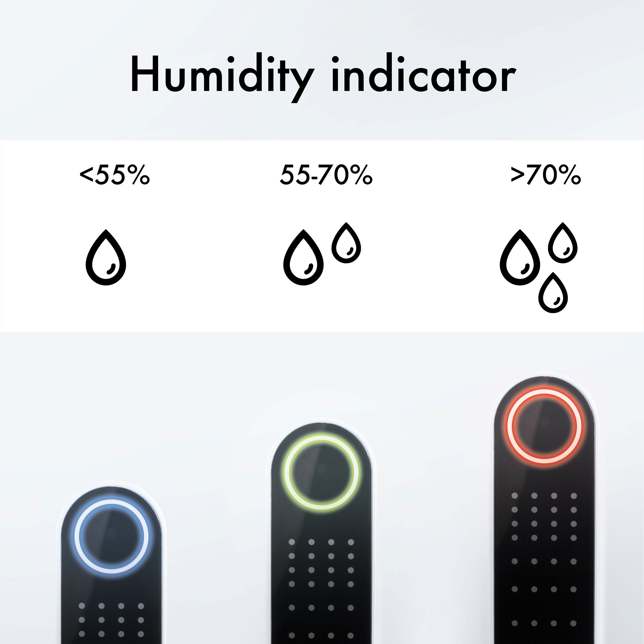Τρεις διαφορετικοί δείκτες φωτισμού για κάθε επίπεδο υγρασίας (Πράσινο, Μπλε, Κόκκινο).