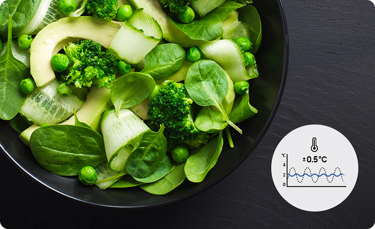 Διατήρησε τη φρεσκάδα, τη γεύση και την υφή των τροφίμων σου για μεγάλο χρονικό διάστημα. Ανεξάρτητα συστήματα ψύξης σε κάθε θάλαμο, ψύχουν κάθε σημείο ομοιόμορφα. Η μόνωση μειώνει κάθε διακύμανση της θερμοκρασίας, ανεξάρτητα από το πόσο ζέστη ή κρύο έχει έξω. Η Τεχνολογία Digital Inverter ανιχνεύει και ελέγχει τη θερμοκρασία με ακρίβεια.