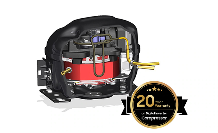 Συμπιεστής Digital Inverter με 20 χρόνια εγγύηση (μόνο στο ανταλλακτικό μετά το 5ο έτος). Απόλαυσε έξυπνη χρήση ενέργειας και μακροχρόνια απόδοση. Ο Συμπιεστής Digital Inverter προσαρμόζει αυτόματα την ταχύτητα ανάλογα με τις απαιτήσεις για ψύξη. Έτσι, η θερμοκρασία είναι κατάλληλη και αποτελεσματική, με χαμηλά επίπεδα θορύβου και υποστηρίζεται με 20ετή εγγύηση στον συμπιεστή με τεχνολογία Ιnverter (μόνο στο ανταλλακτικό μετά το 5ο έτος)*. *Ισχύει από τον Ιούλιο 2022. Η εγγύηση 20 ετών καλύπτει τον συμπιεστή με τεχνολογία Inverter. Μετά τα 5 έτη καλύπτει μόνο το ανταλλακτικό και δεν περιλαμβάνει οποιαδήποτε άλλα κόστη όπως την εργασία και το κόστος μεταφοράς.
