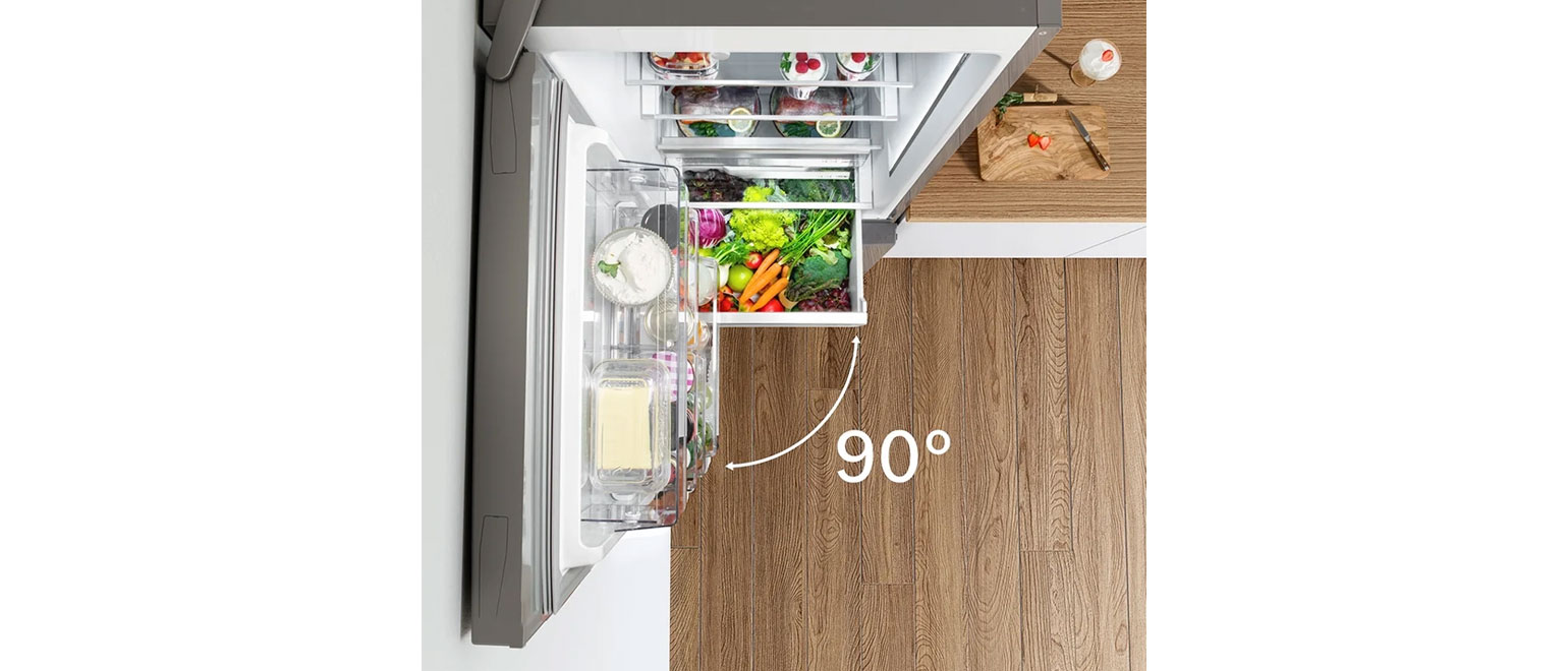 Τοποθέτησε το ψυγείο στο σημείο που σε εξυπηρετεί. Τα κοινά μοντέλα ψυγείων στην αγορά χρειάζονται περίπου 10 εκατοστά απόσταση μέχρι τον τοίχο ή από τα γύρω έπιπλα, για λειτουργικούς και πρακτικούς λόγους. Ακόμα και για να ανοίξουν η πόρτα και τα συρτάρια τους. Χάρη στην πρωτοποριακή τεχνολογία Perfect Fit, οι ελεύθεροι ψυγειοκαταψύκτες Bosch μπορούν να τοποθετηθούν ακριβώς δίπλα σε τοίχους και έπιπλα χωρίς ούτε χιλιοστό χώρου αναξιοποίητο.