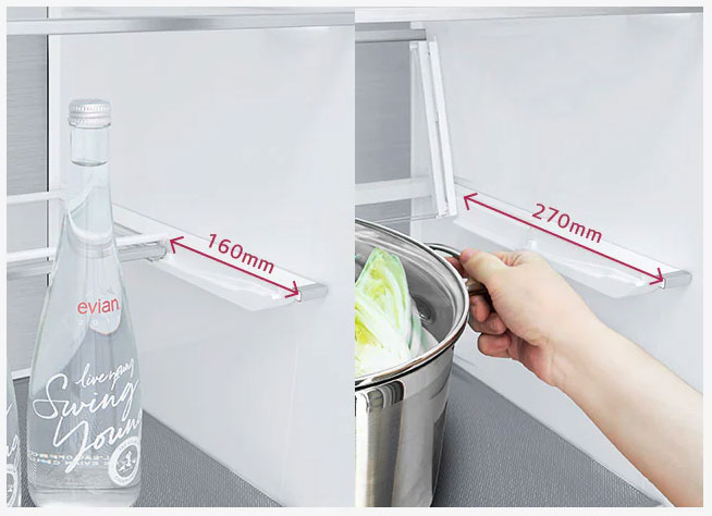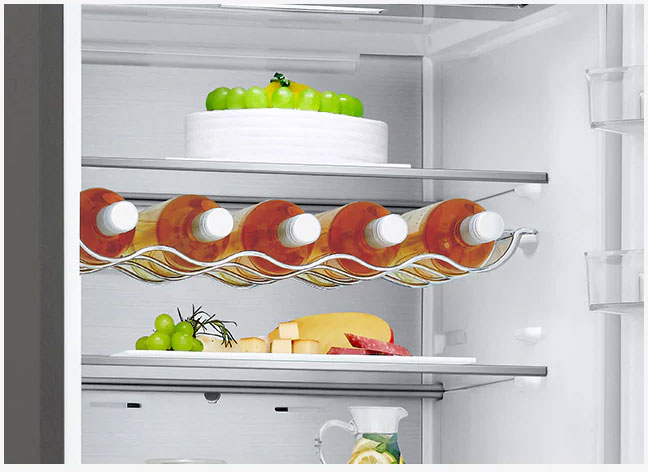 Το αναδιπλούμενο ράφι με 2 κινήσεις σου επιτρέπει να τοποθετείς τρόφιμα οποιουδήποτε μεγέθους και δημιουργεί χώρο για ψηλά και ογκώδη αντικείμενα.Σχάρα κρασιών