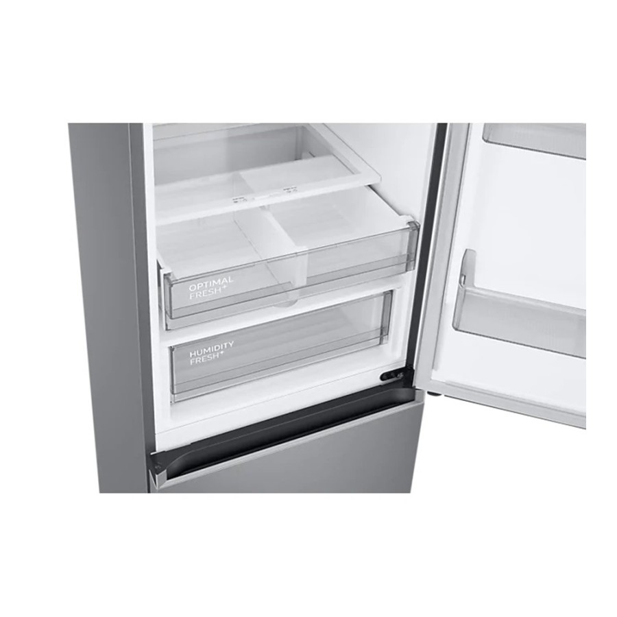 Μοντέρνα και κομψά σχεδιασμένος ψυγειοκαταψύκτης Inox 385 λίτρων της Samsung με μόνωση υψηλής απόδοσης της τεχνολογίας SpaceMax, ομοιόμορφη ψύξη παντού, No Frost τεχνολογία καθώς και έξυπνη χρήση ενέργειας χάρη στη τεχνολογία Digital Inverter.