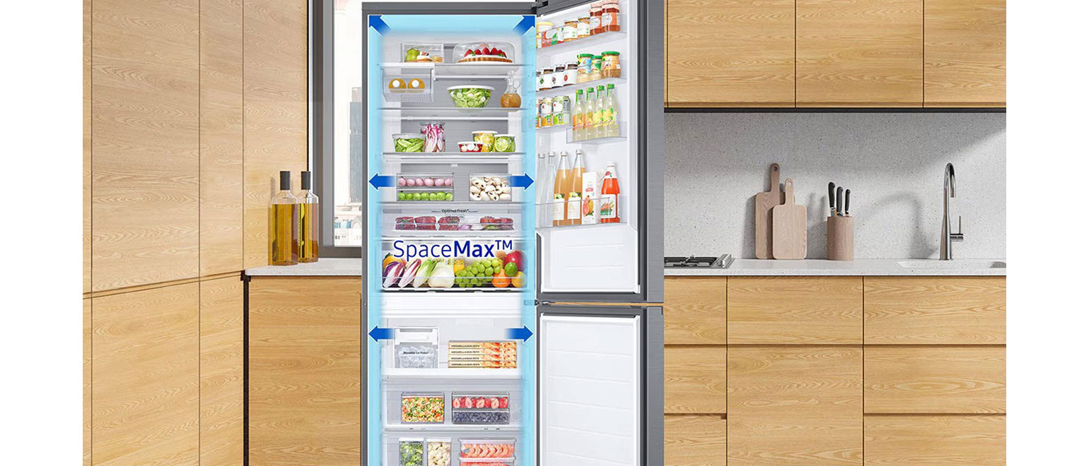 Αποθήκευσε πολλά τρόφιμα σε ένα πολύ μεγάλο ψυγείο 538 λίτρων με σχεδιασμό βάθους 711 mm. Η μόνωση υψηλής απόδοσης της τεχνολογίας SpaceMax καθιστά τους τοίχους πολύ λεπτούς. Έτσι δημιουργεί αρκετό χώρο αποθήκευσης, χωρίς να εξέχει από την επιφάνεια εργασίας σου.