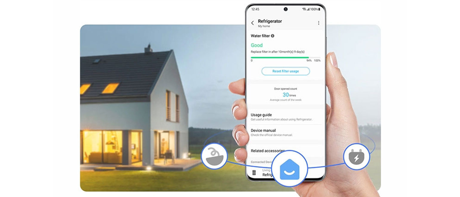 Φρόντισε εύκολα το ψυγείο σου. Το SmartThings Home Care παρέχει παρακολούθηση και ειδοποιήσεις για να μπορείς να ελέγξεις την κατάστασή του. Επίσης, σε ειδοποιεί αυτόματα εάν τα εξαρτήματα χρειάζονται αντικατάσταση ή αν ανιχνεύονται προβλήματα και προτείνει μια λύση.