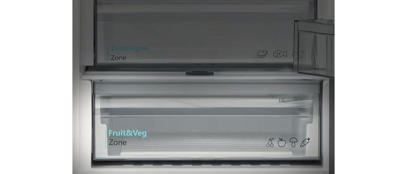 - Fruit & Veg Zone: Ειδικά σχεδιασμένο συρτάρι για φρούτα και λαχανικά με ιδανική υγρασία.