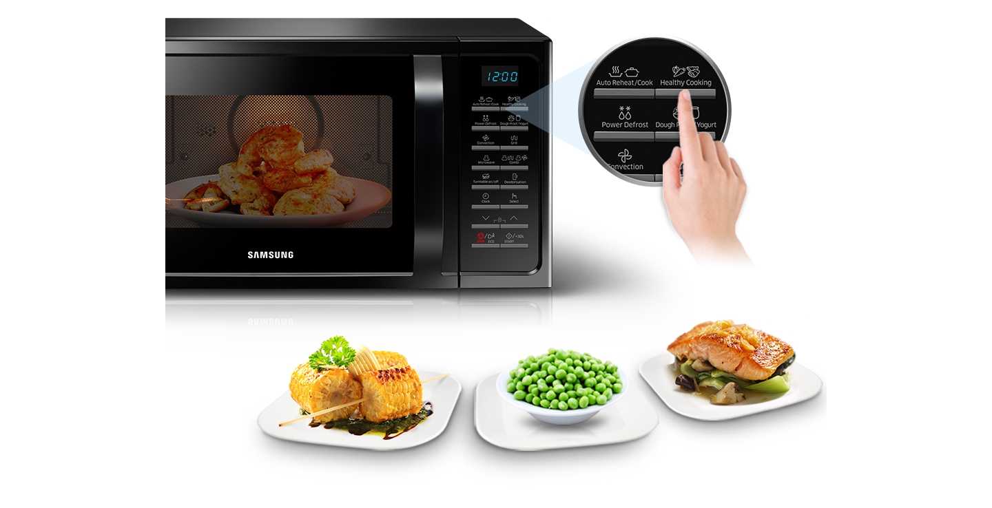 Samsung MC28H5015AS/GC Φούρνος Μικροκυμάτων με λειτουργία Healthy Cooking με 15 προκαθορισμένες λειτουργίες μαγειρέματος και λειτουργία κυκλοθερμικού μαγειρέματος για ζουμερό, γευστικό και τέλεια μαγειρεμένο φαγητό κάθε φορά.