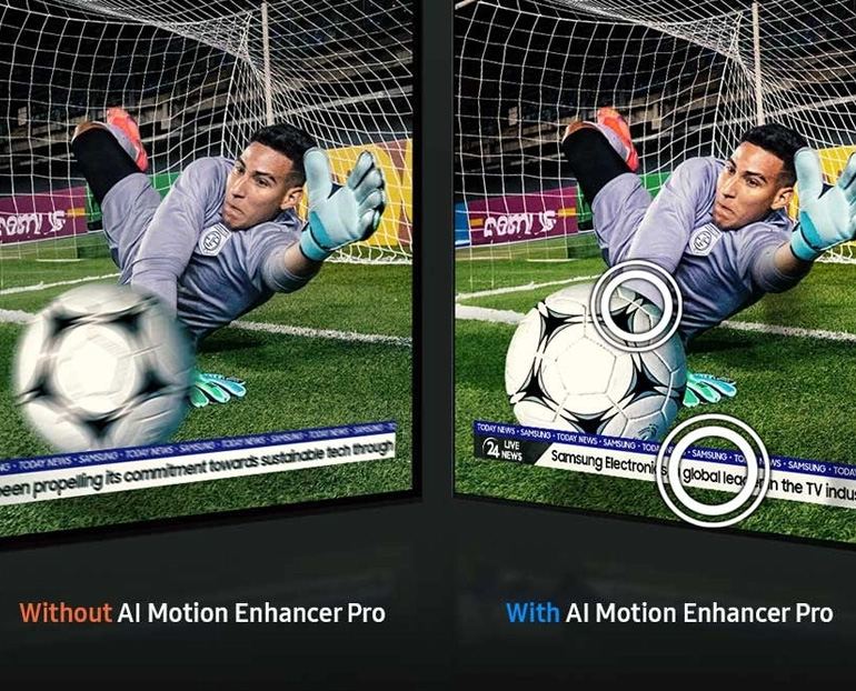 Εξοπλισμένος με 512 νευρωνικά δίκτυα AI, ο επεξεργαστής NQ8 AI Gen3 αξιοποιεί την τεχνητή νοημοσύνη για να οξύνει και να εξομαλύνει την κίνηση των αντικειμένων και του κειμένου. Αυτό οδηγεί την παρακολούθηση ζωντανών αθλημάτων σε άλλο επίπεδο. * Η εμπειρία προβολής μπορεί να διαφέρει ανάλογα με τους τύπους περιεχομένου και τη μορφή. ** Το AI Motion Enhancer Pro δεν ισχύει για τη σύνδεση υπολογιστή και τη λειτουργία παιχνιδιού.
