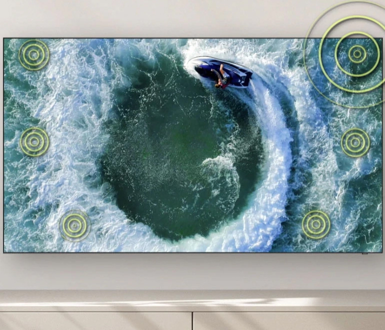 Βυθίσου βαθιά στην ακουστική σου εμπειρία με ήχο παρακολούθησης δράσης από όλες τις γωνίες της τηλεόρασης, συμπεριλαμβανομένου του κέντρου, χωρίς να χάσεις κανένα ηχητικό σήμα.