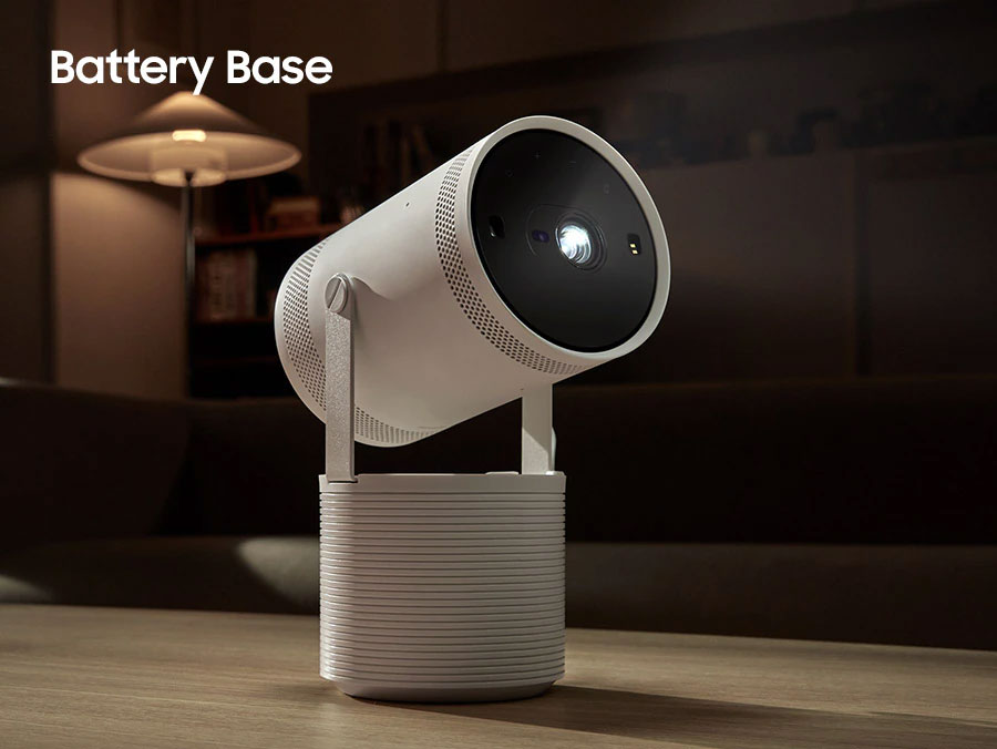 Συμπαγής και κυλινδρικός σχεδιασμός με βάση. Ρυθμίστε τον προβολέα Freestyle σας από τη βάση και ξεκινήστε να προβάλλετε το αγαπημένο σας περιεχόμενο σε διαφορετικές επιφάνειες ρυθμίζοντας τη γωνία.