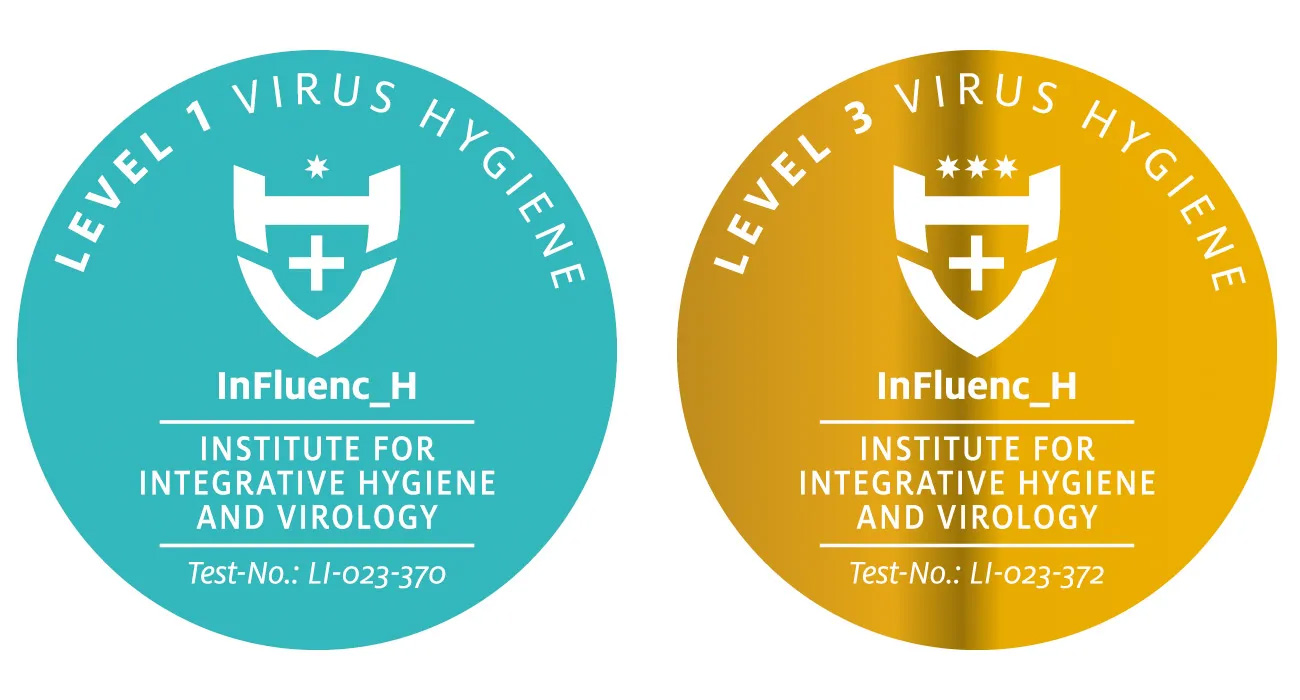 Σύμφωνα με τα τεστ που έχουν πραγματοποιηθεί από το Ινστιτούτο Υγιεινής και Ιολογίας, ιοί όπως αυτός του κορωνοϊού και της γρίπης, εξουδετερώνονται αποτελεσματικά χάρη στο πρόγραμμα Οικονομικό 50°C (Επίπεδο 1 στην ετικέτα για την υγιεινή).Επιπλέον, μπορούν να επιτευχθούν σημαντικά υψηλότερα επίπεδα υγιεινής με τα προγράμματα που χρησιμοποιούν υψηλότερη θερμοκρασία. Έτσι, είναι αποτελεσματικά ενάντια σε πιο ανθεκτικούς ιούς, συμπεριλαμβανομένων αυτών με και χωρίς λιποπρωτεϊνικό περίβλημα. Τέτοια προγράμματα είναι το Εντατικό 70°C και αυτό της φροντίδας πλυντηρίου (Επίπεδο 3 στην ετικέτα για την υγιεινή).Λειτουργία απόλυτα υγιεινής πλύσης.