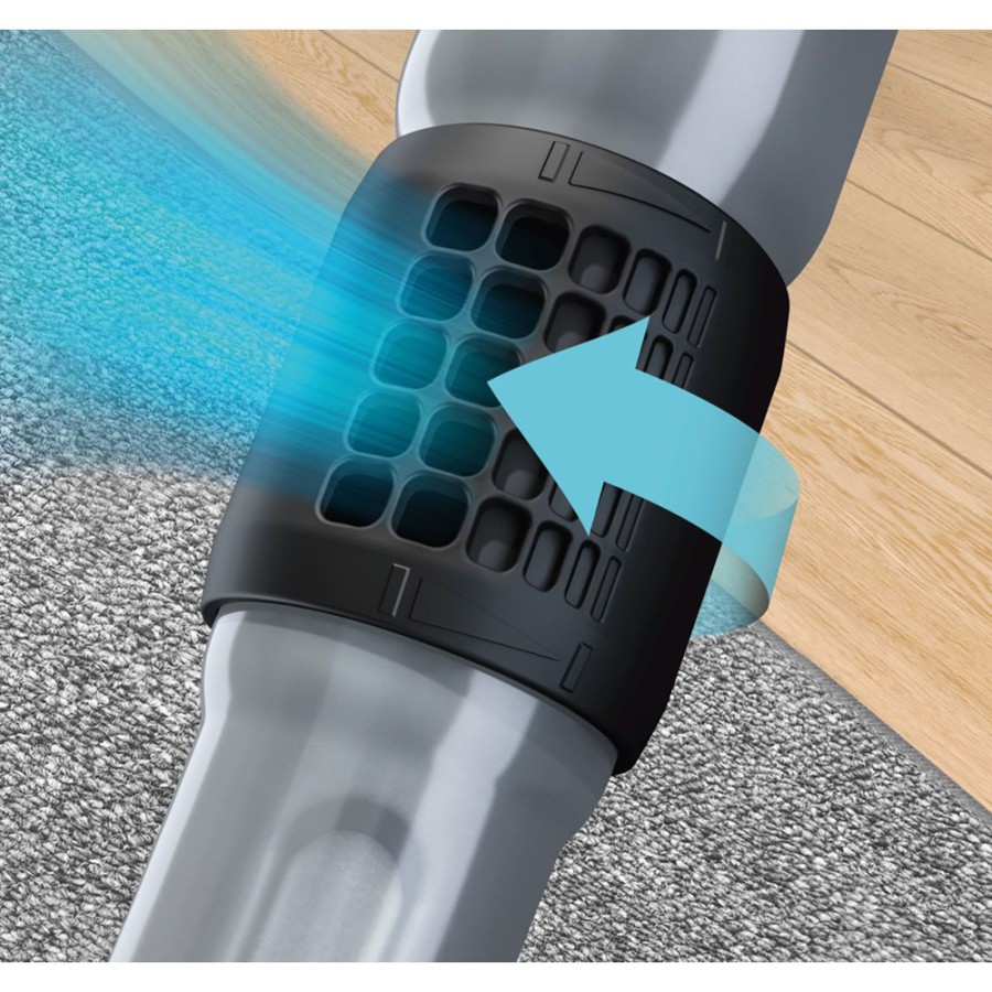 Ευκολότερος καθαρισμόs σε όλα τα δάπεδα με τη ρύθμιση της ροής του αέρα. Για ευκολότερο σκούπισμα καθώς αλλάζετε επιφάνεια από δάπεδο σε χαλί. Ο περιστρεφόμενος διακόπτης σας δίνει τη δυνατότητα να ρυθμίζετε τη ροή του αέρα απλά