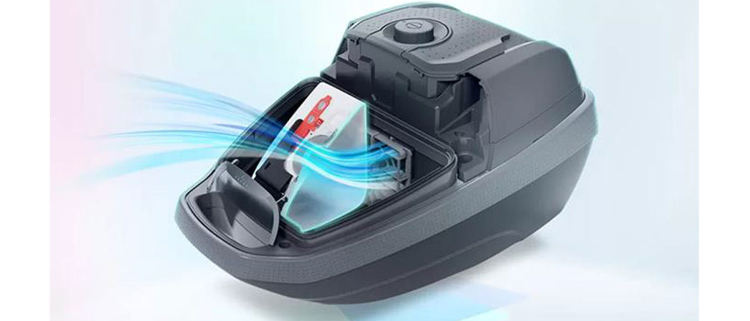 Διαθέτει σακούλα με μεγάλη χωρητικότητα 5Lt που επιτρέπει τη σωστή ροή αέρα και υψηλή απόδοση καθαρισμού. Ενώ οι λιγότερες αλλαγές σακούλας συλλογής σκόνης σας εξασφαλίζουν χαμηλότερο κόστος. Το ειδικό κλείστρο διασφαλίζει την αντικατάστασή της με μέγιστη υγιεινή ενώ μια ένδειξη θα σε ειδοποιήσει όταν είναι ώρα να αντικατασταθεί.