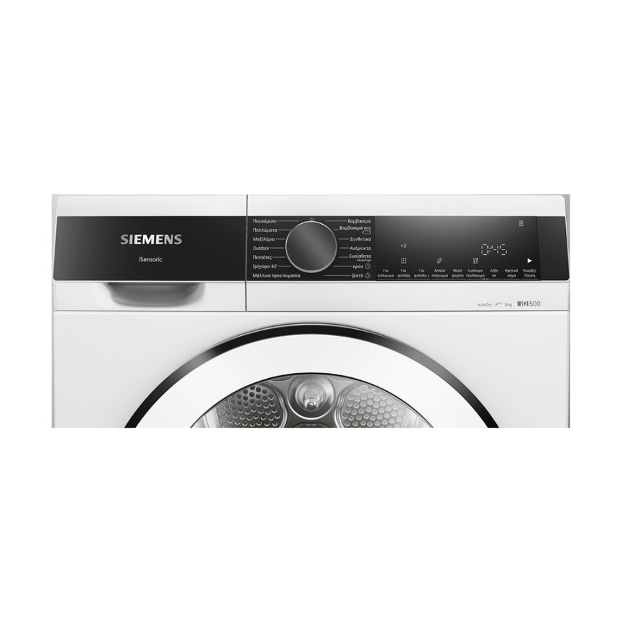 Siemens WQ31G208GR Στεγνωτήριο Ρούχων 8kg με αντλία θερμότητας, τεχνολογία AutoDry, επιλογή μισού φορτίου HalfLoad, σύστημα κάδου SoftDry και πρόγραμμα Outdoor για ρούχα εξωτερικών δραστηριοτήτων.
