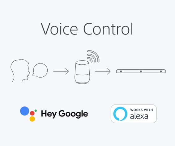 Το sound bar είναι συμβατό με συσκευές με Google Assistant με Chromecast built-in και με συσκευές με Amazon Alexa. Απλώς πρόσθεσε το sound bar Sony A-Series στην ομάδα ηχείων, με την εφαρμογή Google Home και χειρίσου τη μουσική, την ένταση ήχου και άλλα, μόνο με τη φωνή σου.Όλα όσα αγαπάς, σε πραγματικά καθηλωτικό ήχο