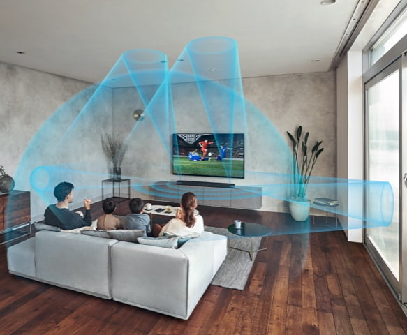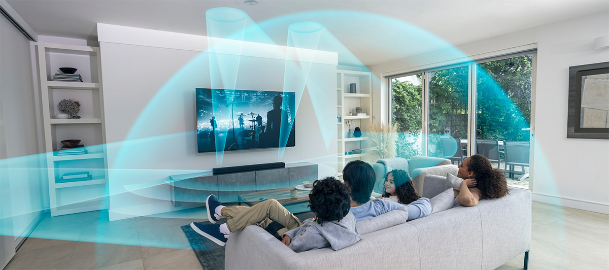 Κάθισε αναπαυτικά και απόλαυσε ακουστική που γεμίζει τον χώρο, με τρία μπροστινά ηχεία για Surround και ένα ενσωματωμένο διπλό subwoofer για βροντερά μπάσα – τα οποία συνεργάζονται για να αποδώσουν καθαρό ήχο ευρέος φάσματος σε όλο το δωμάτιο.