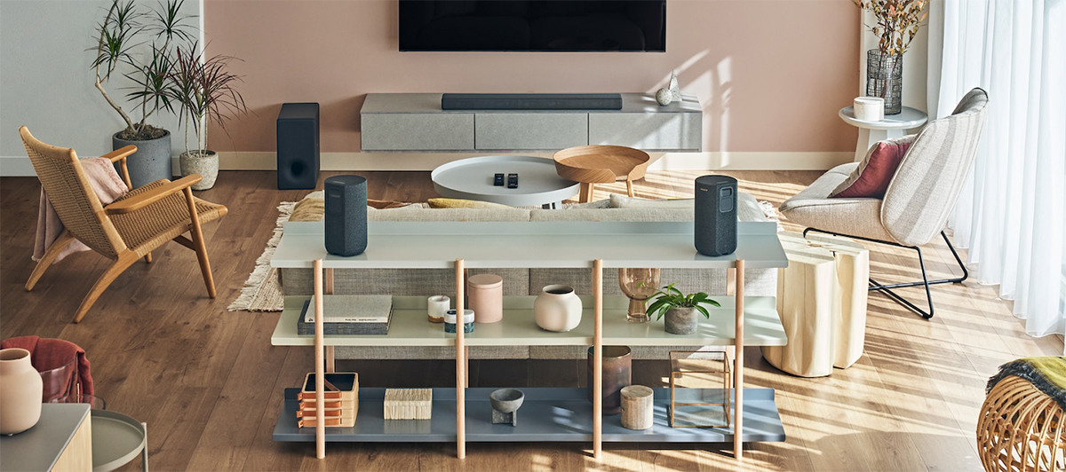 Το Sony Soundbar και τα προαιρετικά ηχεία έχουν κατασκευαστεί με την ίδια φιλοσοφία πανκατευθυντικής σχεδίασης. Οι κομψές στρογγυλεμένες γωνίες δημιουργούν ένα ενιαίο κομμάτι που αποδίδει ήχο ευρείας διάχυσης. Ο συνδυασμός υλικών με πλούσιες υφές το καθιστά ιδανικό για κάθε αισθητική σαλονιού.Γενικά χαρακτηριστικά