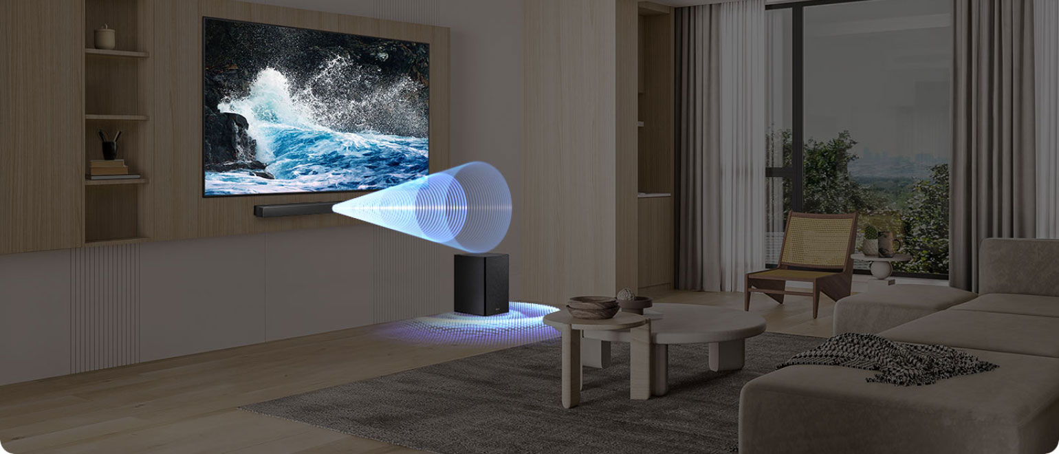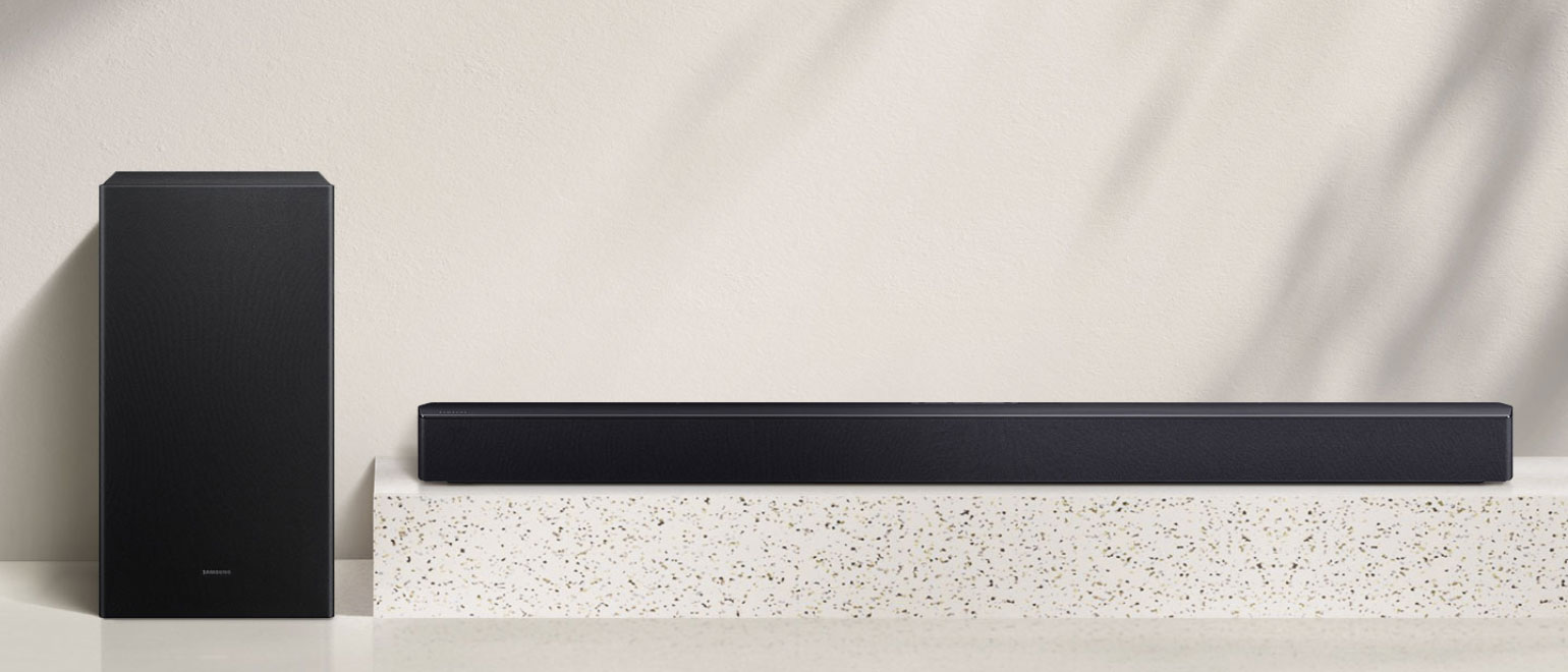 Απόλαυσε κορυφαία ποιότητα ήχου σε κάθε σκηνή με την τεχνολογία Adaptive Sound. Το soundbar HWB450F της Samsung αναγνωρίζει αυτόματα το είδος του περιεχομένου και ρυθμίζει τον ήχο ανάλογα, προσφέροντάς σου καθαρές φωνές και λεπτομερείς ήχους.