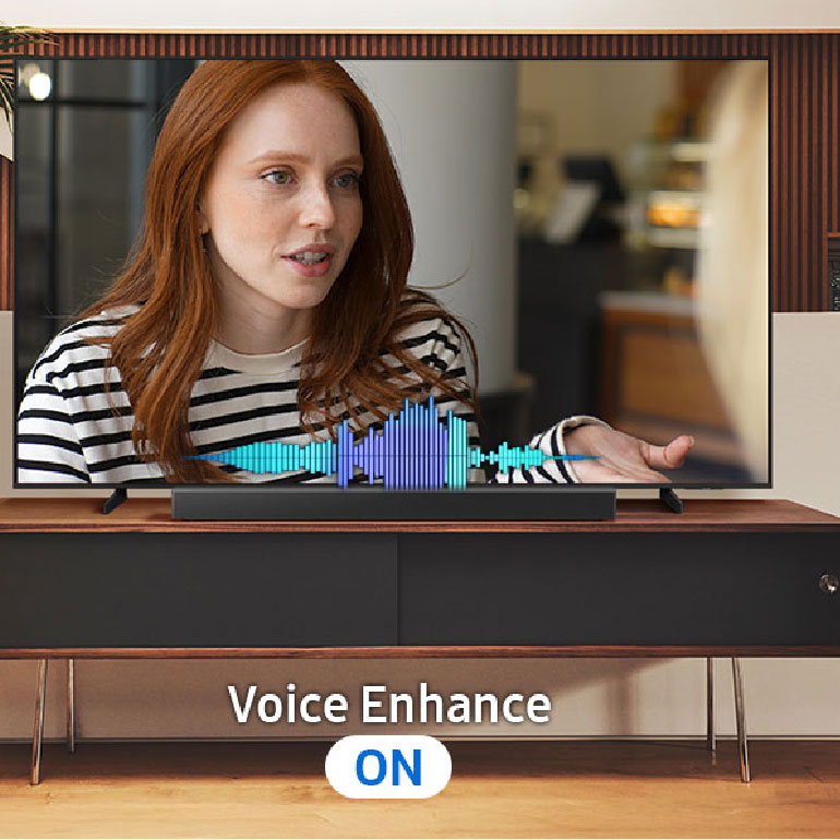 Μην χάνεις καμία λέξη από τις αγαπημένες σου ταινίες και σειρές. Η λειτουργία **Voice Enhance** ενισχύει τις φωνές και ρυθμίζει αυτόματα τον ήχο, προσφέροντάς σου καθαρούς, ευδιάκριτους διαλόγους και μια πιο άνετη εμπειρία ακρόασης — ιδανική για κάθε είδος περιεχομένου.