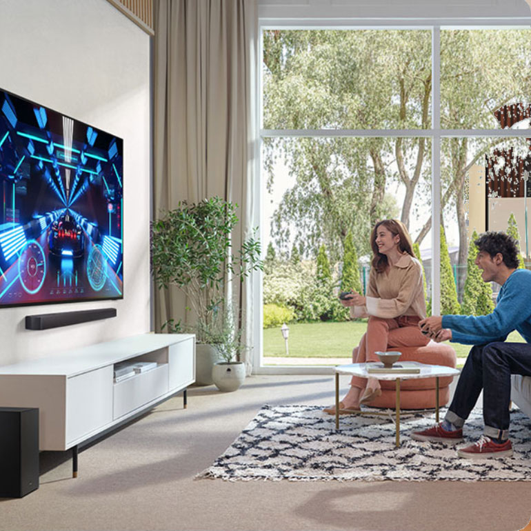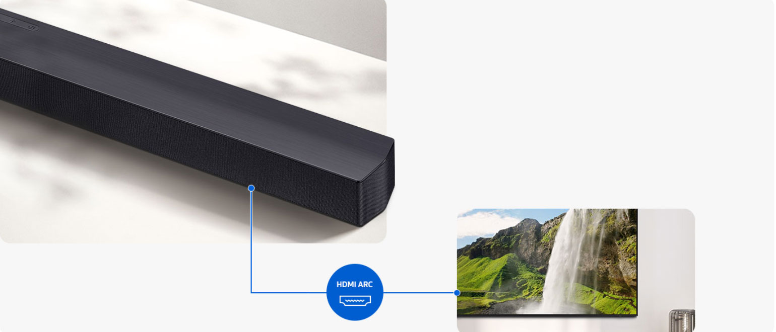 Συνδέεις εύκολα το soundbar με οποιαδήποτε εξωτερική συσκευή μέσω HDMI ARC και απολαμβάνεις καθαρό, ζωντανό ήχο χωρίς καμία απώλεια στην ποιότητα.