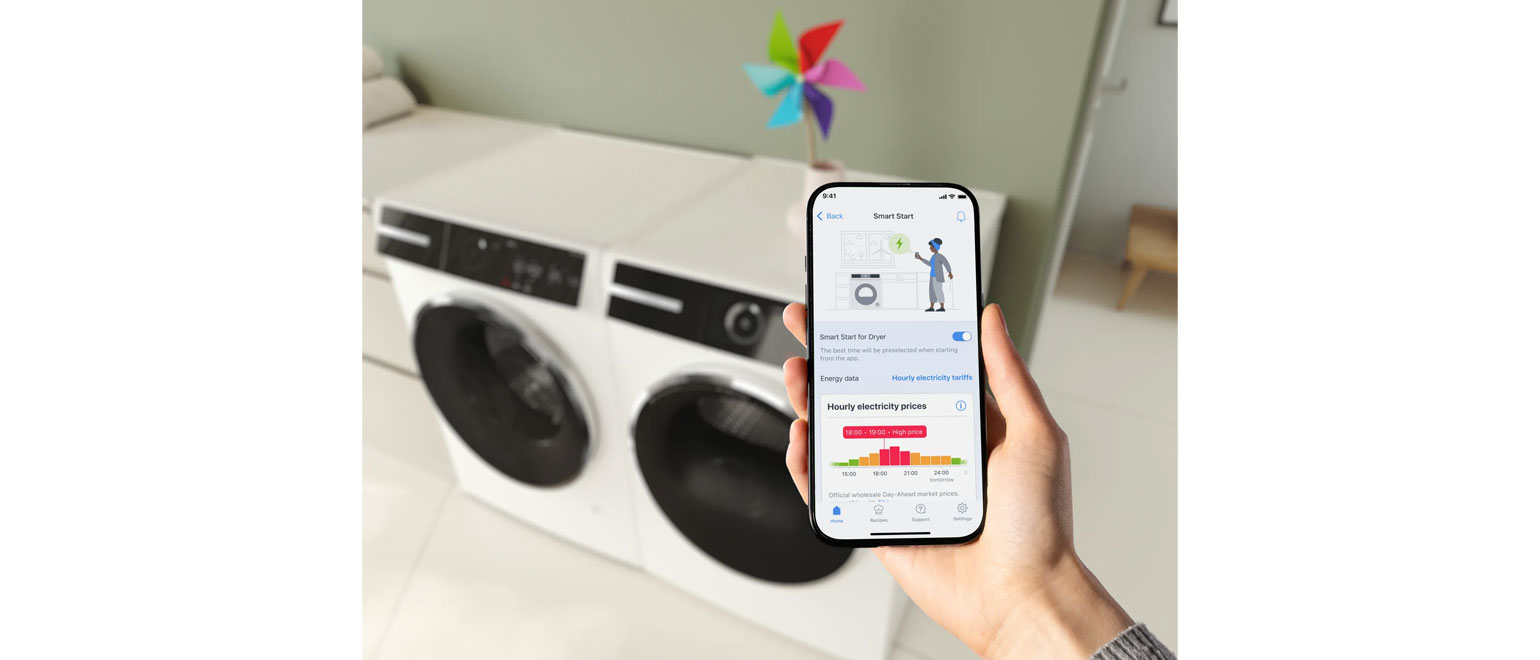 Τώρα η εξοικονόμηση ενέργειας γίνεται πιο εύκολη από ποτέ. Η λειτουργία Smart Start επιλέγει αυτόματα την ιδανική ώρα έναρξης των συνδεδεμένων συσκευών με το Home Connect, ώστε να λειτουργούν τις ώρες που μπορούν να εξοικονομήσουν περισσότερους πόρους. Αυτό συμβαίνει όταν υπάρχει η μεγαλύτερη διαθεσιμότητα ανανεώσιμων πηγών, όπως η ηλιακή, στο δίκτυό σας, ή όταν υπάρχει χαμηλότερη χρέωση στο ρεύμα, π.χ. νυχτερινό ρεύμα. Έτσι, πλέον, είναι εύκολο να ρυθμίσετε τις συσκευές σας ώστε να εξοικονομούν ενέργεια, χωρίς να κάνετε συμβιβασμούς ως προς τα καλύτερα αποτελέσματα.