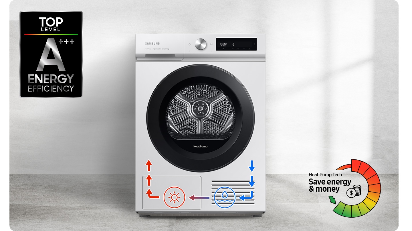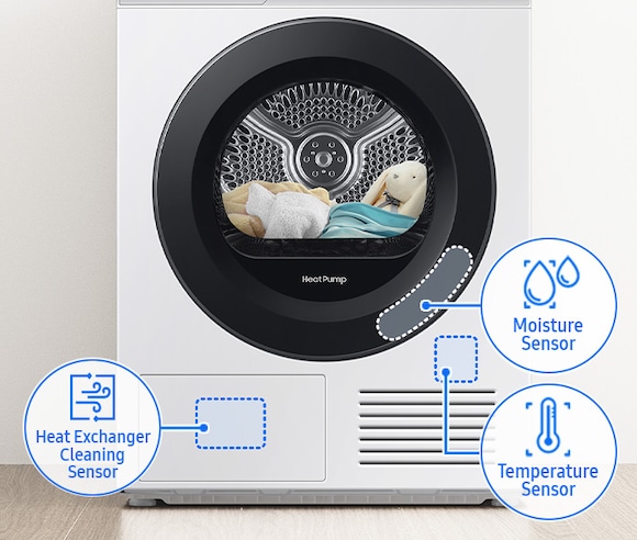 Χρησιμοποιήστε έξυπνα την ηλεκτρική ενέργεια*. Η τεχνολογία αντλίας θερμότητας προσφέρει έναν αποδοτικό και ήπιο τρόπο για το στέγνωμα των ρούχων. Διαθέτει ενεργειακή κλάση A+++ καθώς χρησιμοποιεί «ψυκτικό» αντί ηλεκτρικής ενέργειας για τη θέρμανση του αέρα, και με αυτόν τον τρόπο ανακυκλώνει τον ζεστό αέρα, αποφεύγοντας έτσι την μεγάλη κατανάλωση ενέργειας. * Εσωτερική δοκιμή σύμφωνα με το πρότυπο IEC 61121:2013/Φορτίο πλύσης 8kg/Πρόγραμμα βαμβακερών για το Ντουλάπι με Αντλία Θερμότητας του Samsung μοντέλου DV80F5E4HGW σε σύγκριση με το Samsung μοντέλο DV80H4100CW χωρίς Αντλία Θερμότητας. Τα μεμονωμένα αποτελέσματα ενδέχεται να διαφέρουν.Έξυπνοι αισθητήρες