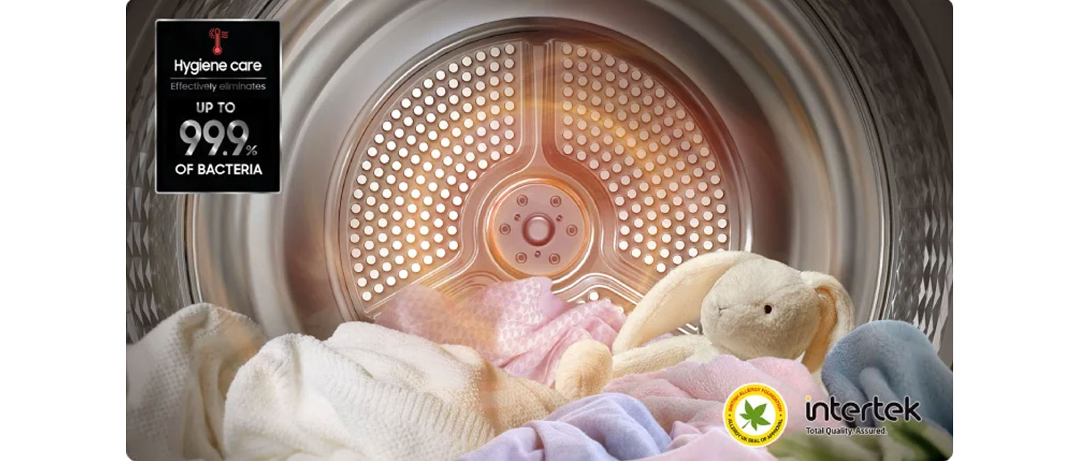 Μειώνεις τα βακτήρια στα ρούχα σου με τον κύκλο Hygiene Care. Είναι ιδανικός για στεγνά ή βρεγμένα βαμβακερά υφάσματα έως 2 κιλά και εξασφαλίζει αποτελεσματικό στέγνωμα χωρίς συμβιβασμούς. Χρησιμοποιώντας υψηλές θερμοκρασίες, εξαλείφει έως και το 99% των βακτηρίων Staphylococcus aureus, Escherichia coli και Pseudomonas aeruginosa.