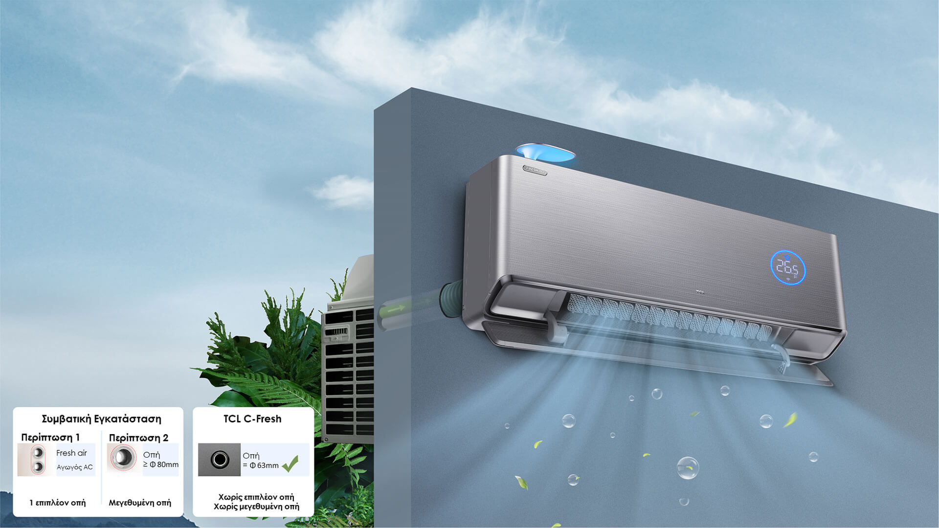 Με τον κινητήρα φρέσκου αέρα υψηλής ισχύος, το κλιματιστικό C-Fresh μπορεί να φέρει έως και 60 m3 φρέσκο αέρα ανά ώρα, ικανοποιώντας τις ανάγκες φρέσκου αέρα των περισσότερων εσωτερικών χώρων. Επιπλέον, η σειρά C-Fresh προσφέρει εύκολη εγκατάσταση χωρίς να χρειάζεται επιπλέον οπή όδευσης σωληνώσεων ή μεγέθυνση της οπής.