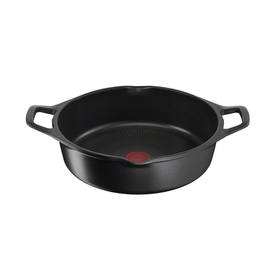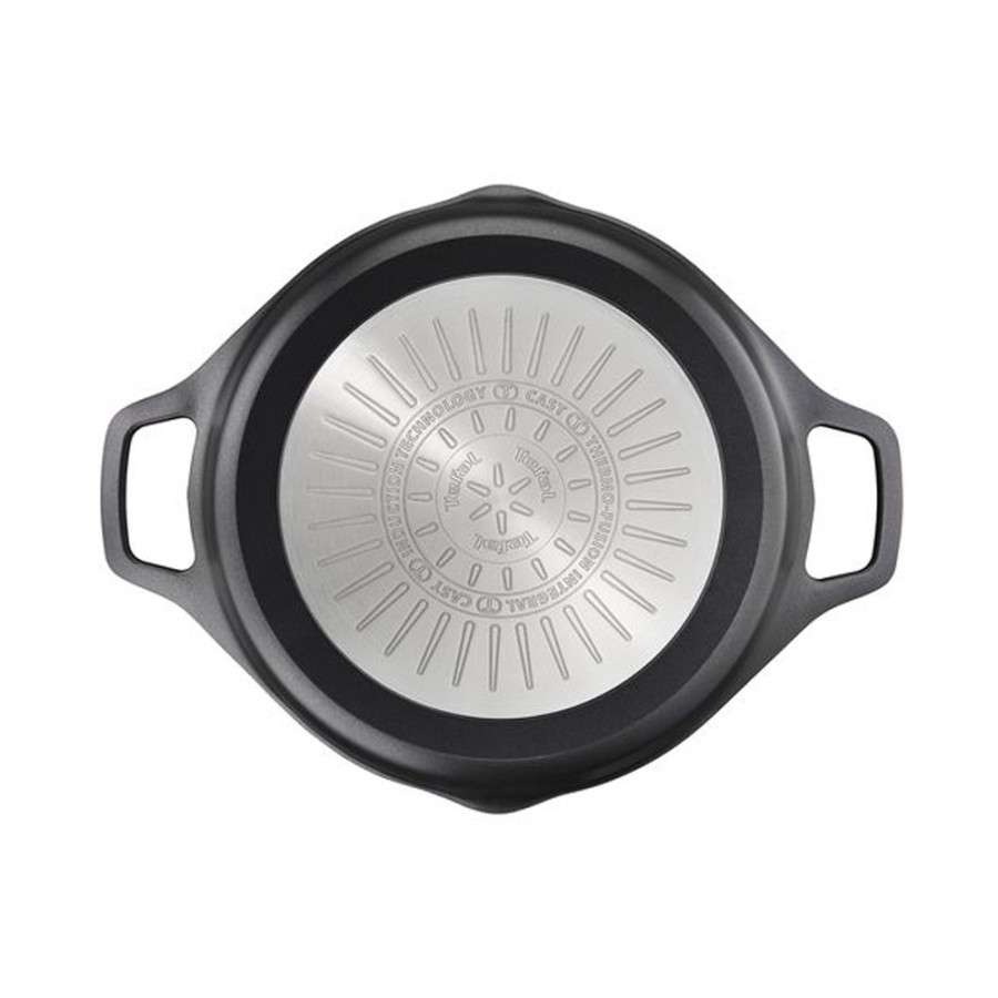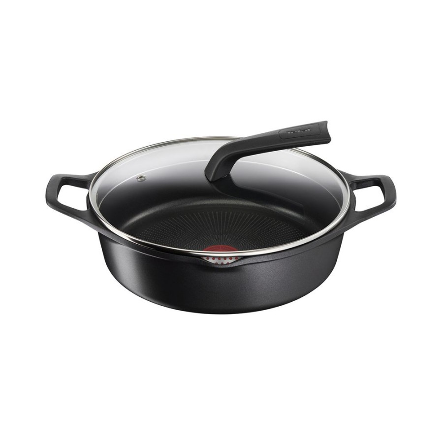 Βαθύ τηγάνι με καπάκι Tefal Robusto από χυτό αλουμίνιο που διατηρεί την θερμότητα για λαχταριστά πιάτα και αντικολλητική επίστρωση τιτανίου για εύκολο καθάρισμα.