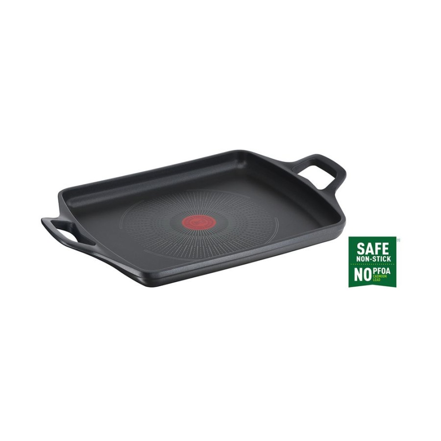 Πλάκα ψησίματος Tefal Robusto από χυτό αλουμίνιο που διατηρεί την θερμότητα για λαχταριστά πιάτα και αντικολλητική επίστρωση τιτανίου για εύκολο καθάρισμα.
