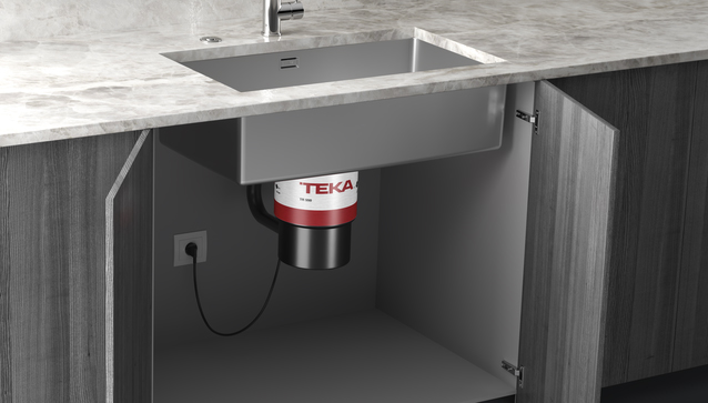 Σκουπιδοφάγος Τeka Inox με ισχυρό μοτέρ 0,75 hp, ανοξείδωτες λεπίδες και αντιδιαβρωτική προστασία με μεγάλη χωρητικότητα δοχείου 980ml και ηχομονωτικό κέλυφος.