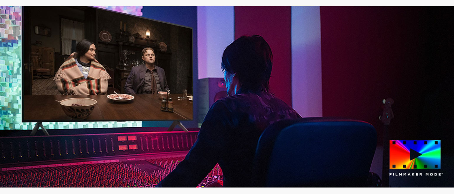 Ζήσε μια κινηματογραφική εμπειρία σύμφωνα με το όραμα του σκηνοθέτη με Filmaker Mode που προσαρμόζεται στο περιβάλλον και διατηρεί την εικόνα όσο το δυνατόν πιο κοντά στην αρχική της μορφή.