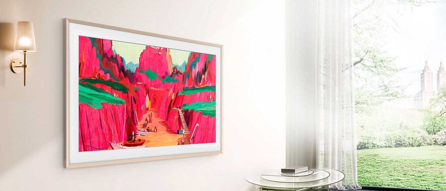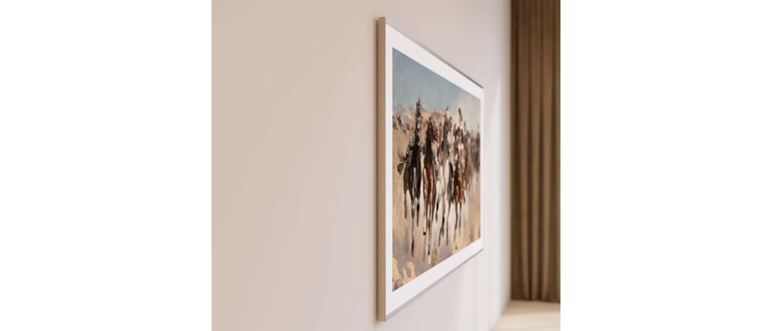 Με λεπτό προφίλ, η The Frame μπορεί να τοποθετηθεί σχεδόν ισοεπίπεδα στον τοίχο, θυμίζοντας έναν πραγματικό πίνακα.