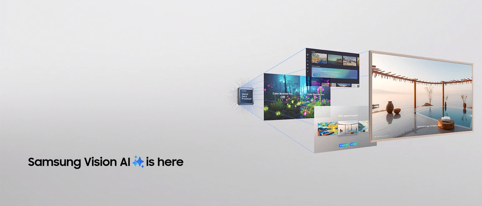 Επίλεξε λέξεις-κλειδιά για την ατμόσφαιρα που θέλεις και άφησε το ΑΙ να κάνει τα υπόλοιπα. Η τηλεόραση δημιουργεί όμορφες, εκπληκτικές εικόνες που αλλάζουν την αίσθηση του σπιτιού σου.